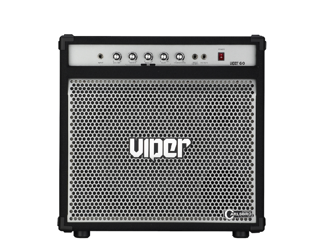 CARLSBRO VIPER 60. Kompaktowe combo basowe o mocy 60Watt. Przedwzmacniacz obejmuje zmienną kompresję, 3-pasmowy korektor z poziomami basów, średnich i wysokich tonów. 12-calowy głośnik basowy Carlsbro Powertone. Posiada Patch Bay, wejście odtwarzacza MP3/CD i wyjścia słuchawkowe. Technologia: półprzewodnikowa. Jeden kanał. Wejścia: gitarowe 6,3 mm, wejście audio/CD 6,3 mm. Wyjścia: słuchawkowe 6,3 mm. Sterowanie: Volume Korekcja: Bass/Middle/Treble. Efekty: Compressor. Impedancja: 4 ohm. Wymiary [HWD]: 570mm x 535mm x 575mm. Waga: 36 kg.