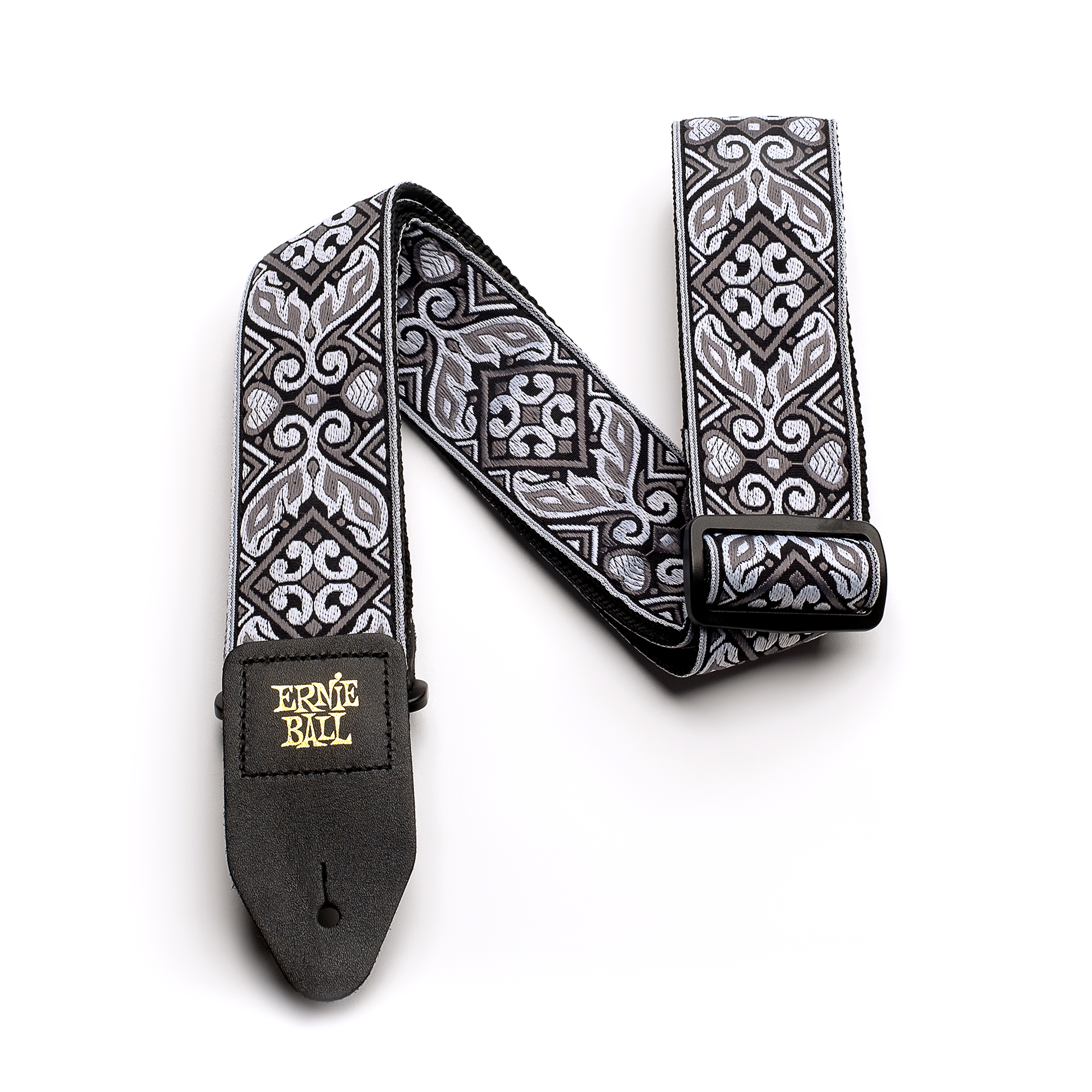 Pasek do gitary wykonany z trwałej i wygodnej polipropylenowej plecionki. Seria Polypro. Zakończenia skórzane. Regulowana długość od 104 cm do 182 cm. Wzór żakardowy: Tribal Silver Jacquard Strap.