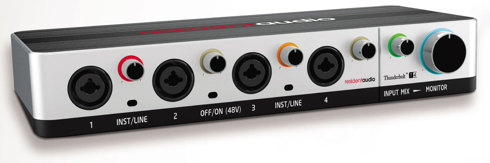Mocny i wszechstronny interfejs do różnych zastosowań zarówno w domowym studio, na scenie, i dla Dj'ów. T4 Resident Audio to pierwsze urządzenie na Thunderbolt które podnosi poprzeczkę w technologii nowoczesnego recordingu. Wyposażony w 4 wejścia mic/line i 4 symetryczne wyjścia, złącza MIDI I/O, funkcjonalny monitoring i duży regulator głośności. Przetwarzanie z jakością 24 bit 96kHz z minimalna latencją daje nowy wymiar odsłuchu sceny dźwiękowej i sprawia że jest to najbardziej innowacyjne urządzenie ostatniej dekady. T4 jest zasilany przez złącze Thunderbolt w aluminiowej obudowie 18,2x11,3x4,6 cm