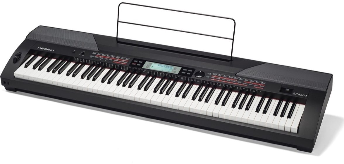 SP 4200. 88-klawiszy (klawiatura ważona młotkowa). Wyświetlacz: podświetlany LCD. Polifonia: 128 głosów (max). Brzmienia: 600. Funkcja dual (łączone brzmienie): tak. Style: 230 + 10 styli użytkownika. Kreator styli: tak. O.T.S. : tak. Sequencer: 5. utworów użytkownika. Utwory demonstracyjne: 5. Biblioteka utworów demonstracyjnych: 120 utworów; Muzyczny przewodnik. Pamięć zewnętrzna: USB (32GB max). Wymiary (mm): 1365 x 366 x 137. Waga (kg): 13,8. Instrukcja obsługi w języku polskim w komplecie.