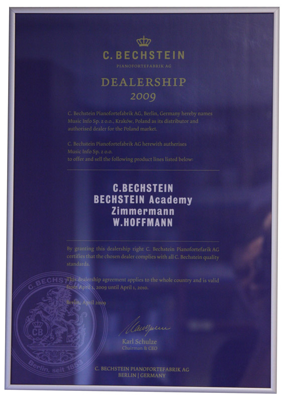 Firma C.Bechstein nagrodziła Music Info za wzorową współpracę.