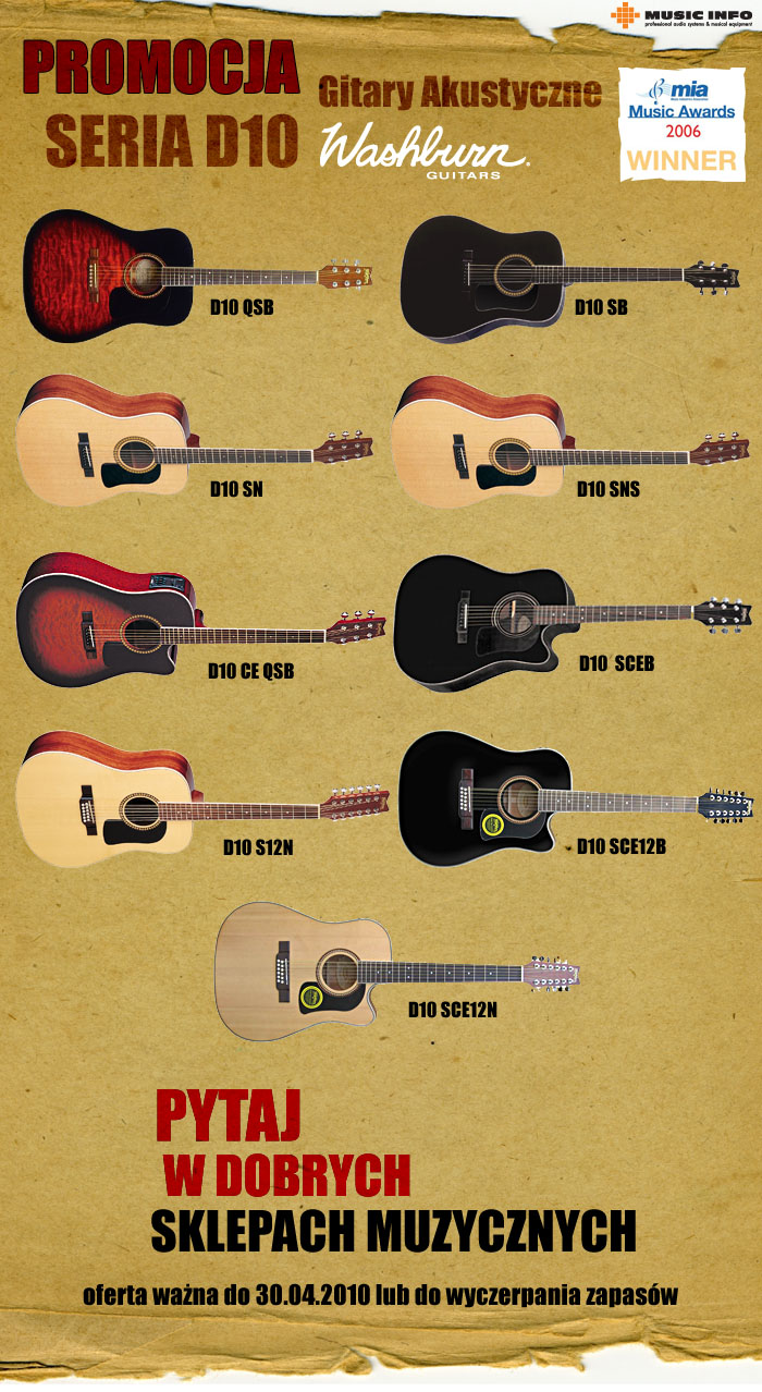Washburn w promocjii wiosennej a tu legendarne gitary akustyczne i elektro-akustyczne typu Dread, seria D 10.