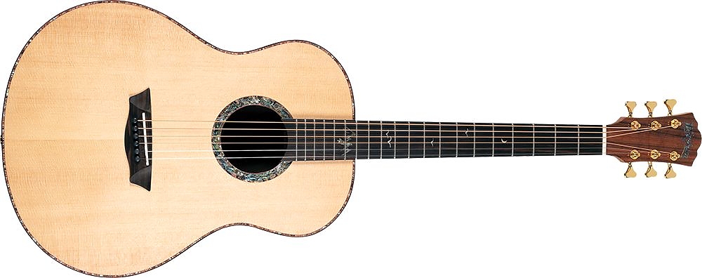 Elegante S 24 S. Gitara akustyczna z serii Bella Tono. Kształt: Studio. Płyta wierzchnia: lity świerk. Boki i tył: selekcjonowane Pau Ferro. Binding korpusu: heban, padauk, masa perłowa Abalone. Ożebrowanie: quarter sawn scalloped. Rozeta: masa perłowa Abalone z drewnem padauk Gryf: mahoń z matowym wykończeniem. Dwustronny pręt regulujący. Podstrunnica: heban, inkrustacje wykonane z masy perłowej. Ilość progów: 20. Siodełko: kość. Mostek: hebanowy z prożkiem wykonanym z kości. Menzura: 25,5". Klucze: złote typu Die-Cast. Wykończenie na wysoki połysk.