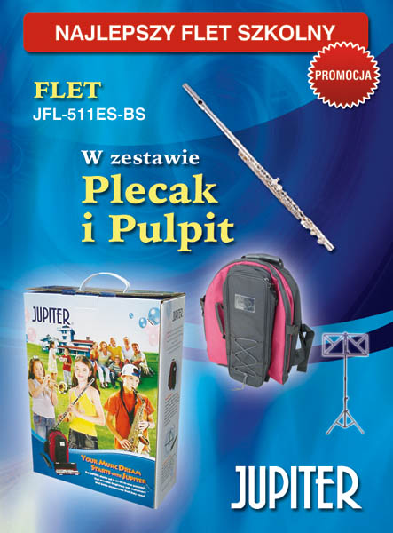 FLET 511 ES BS z praktycznym dwukomorowym plecakiem oraz pulpitem na nuty. Zestaw zawiera: Flet 511 ES z futerałem plecak w pokrowcem na flet składany pulpit na nuty Całość w promocyjnej cenie